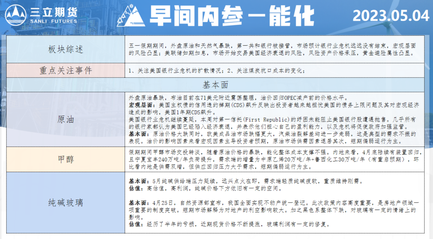 标题:三立期货5月4日早间内参——能化