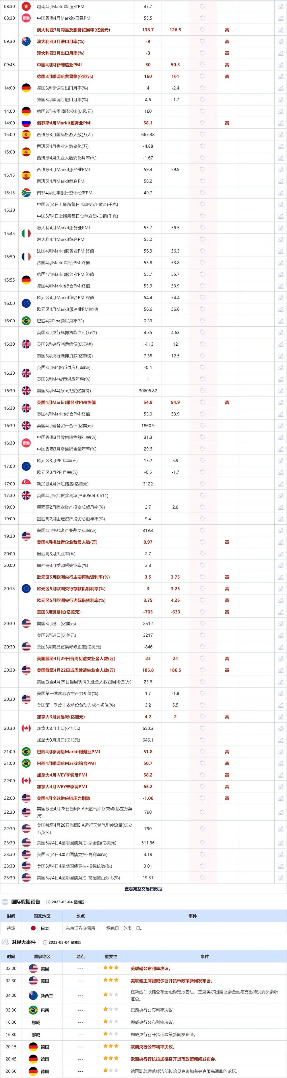 后续及时更新的财历数据请关注:【汇通网5月4日财经日历】