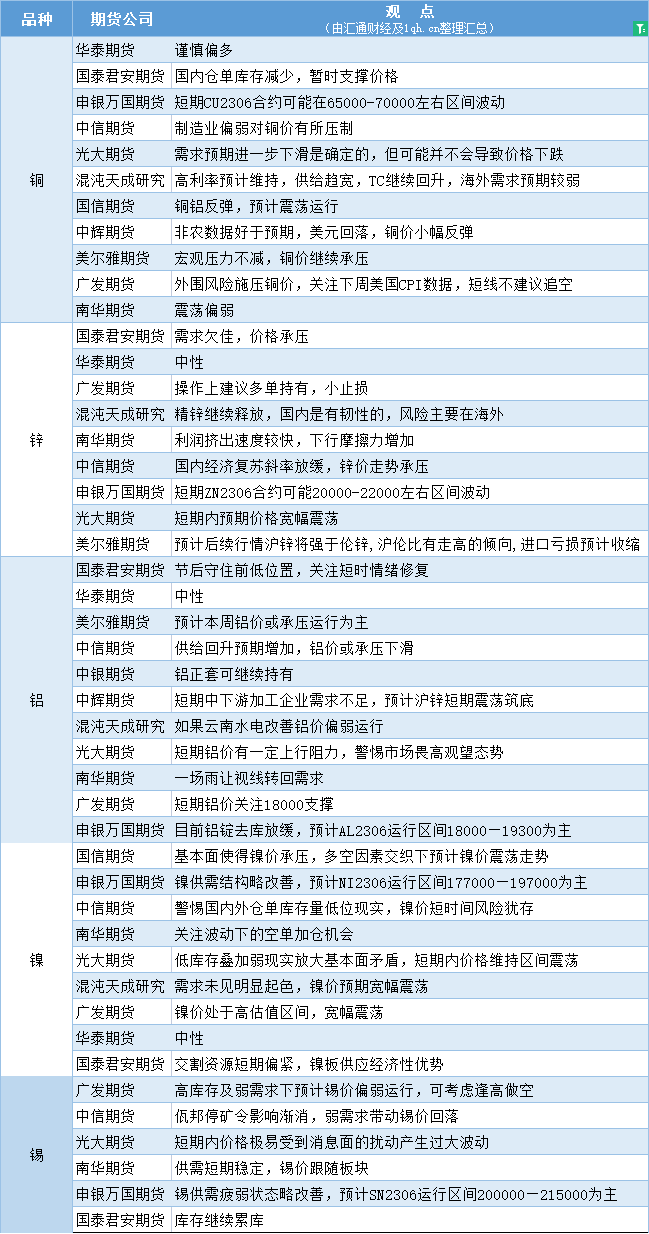 汇通财经APP讯——期货公司观点汇总一张图:5月8日有色系(铜、锌、铝、镍、锡等)