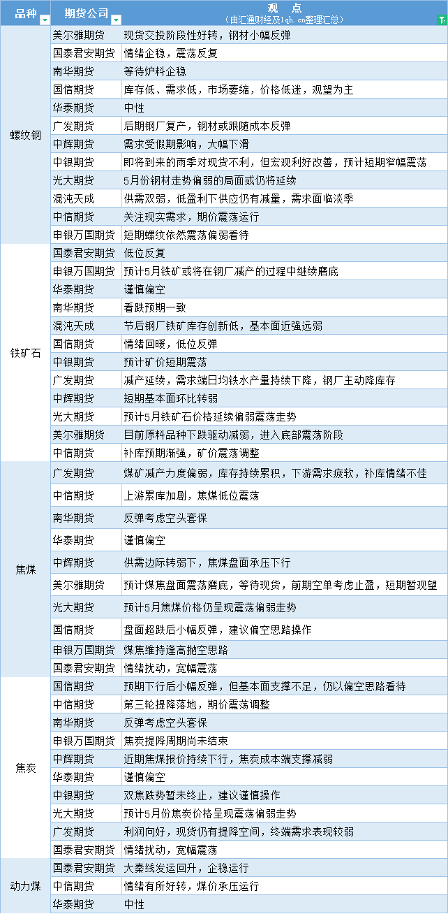 汇通财经APP讯——期货公司观点汇总一张图:5月8日黑色系(螺纹钢、焦煤、焦炭、铁矿石、动力煤等)