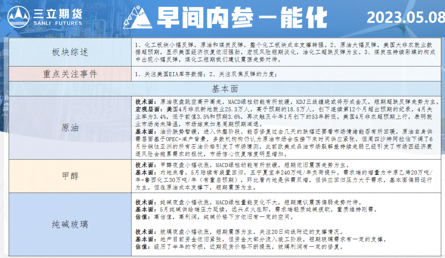 汇通财经APP讯——三立期货早间内参显示,原油短期以超跌反弹为主;甲醇短期震荡走势为主;玻璃短期震荡为主。三立期货授权文本由“专注期货开户交易及专业行情分析资讯网站”【一期货 www.1qh.cn】转发。