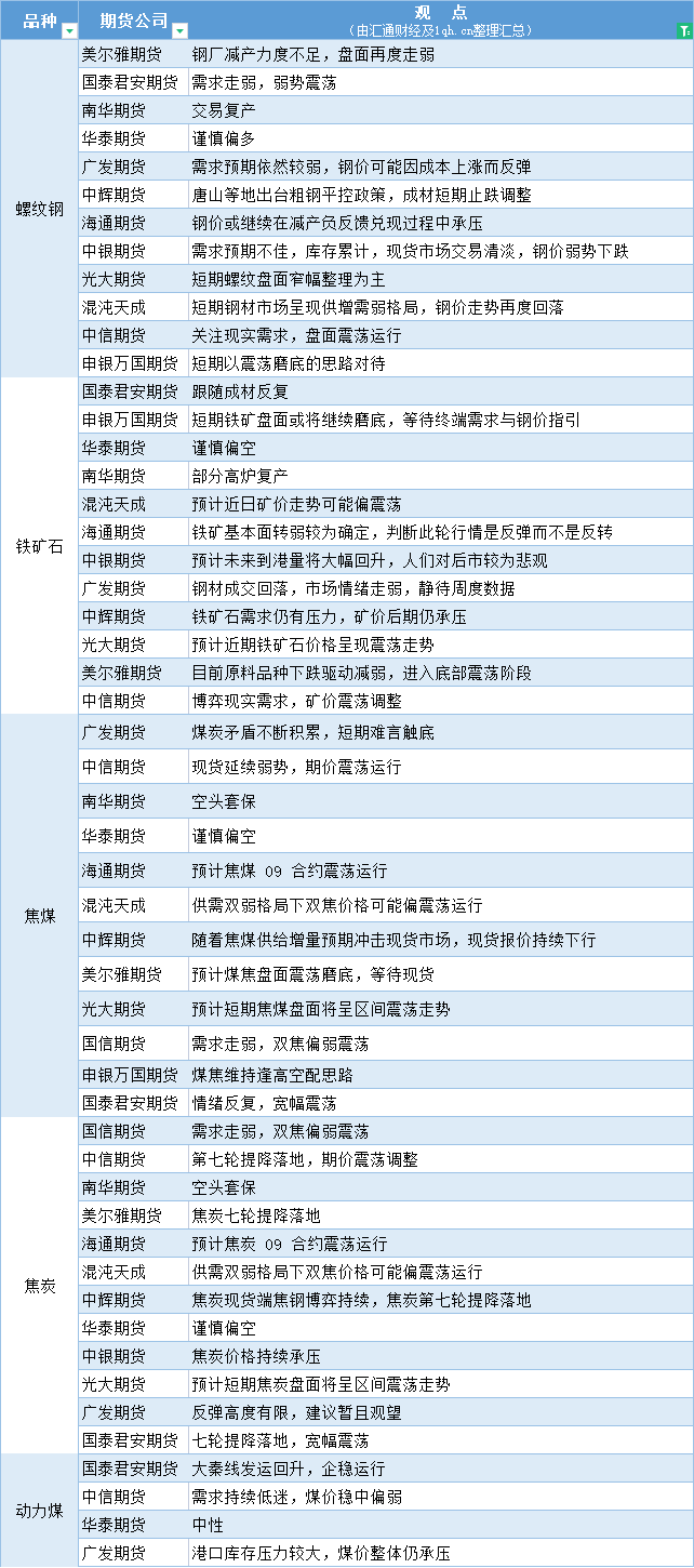 汇通财经APP讯——期货公司观点汇总一张图:5月11日黑色系(螺纹钢、焦煤、焦炭、铁矿石、动力煤等)