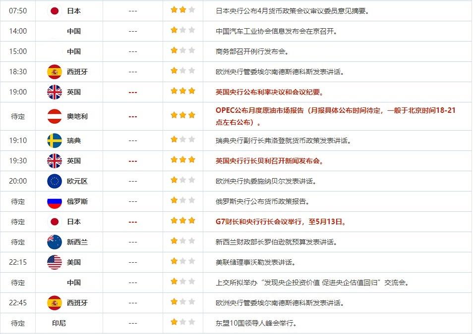 后续及时更新的财历数据请关注:【汇通财经5月11日财经日历】