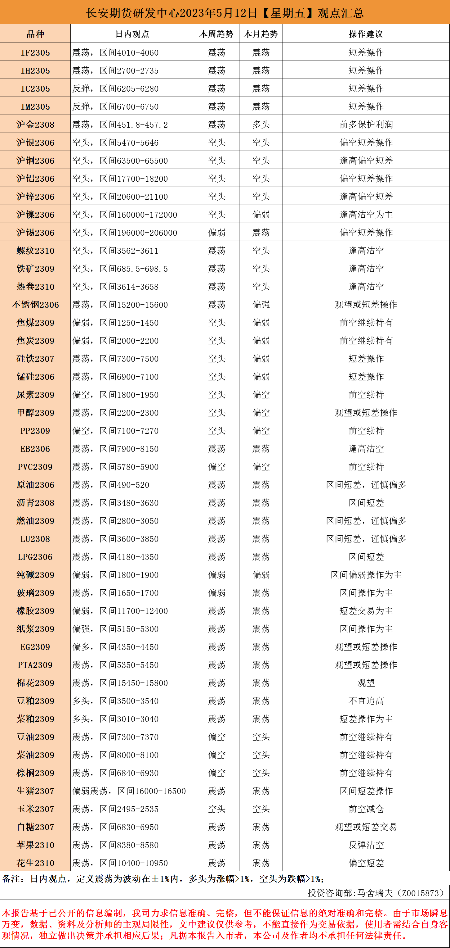 标题:长安期货5月12日看盘报告