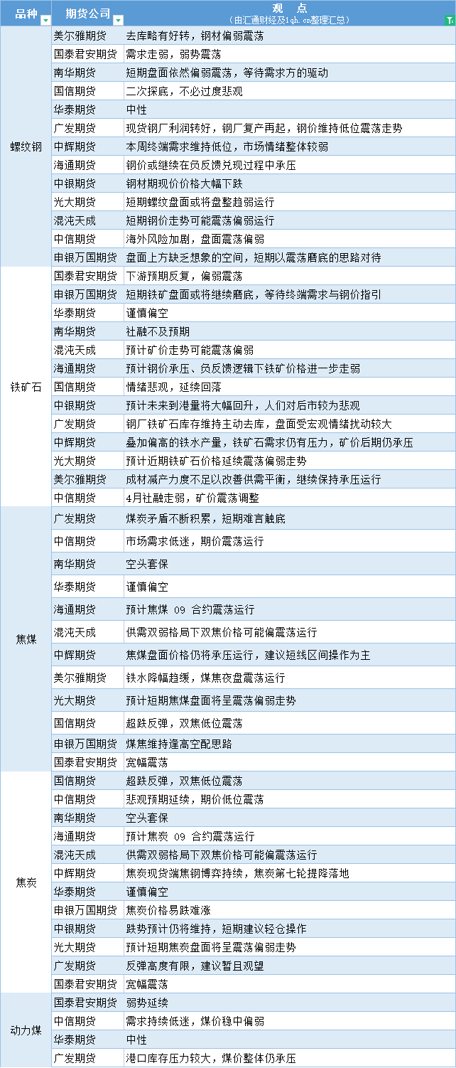 汇通财经APP讯——期货公司观点汇总一张图:5月12日黑色系(螺纹钢、焦煤、焦炭、铁矿石、动力煤等)