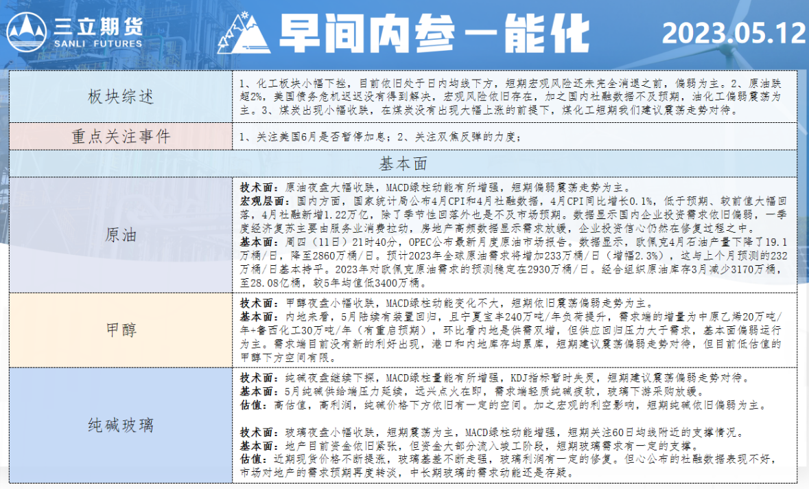 汇通财经APP讯——三立期货早间内参显示,原油短期偏弱震荡走势为主;甲醇短期依旧震荡偏弱走势为主;玻璃短期震荡为主,MACD绿柱动能增强,短期关注60日均线附近的支撑情况。三立期货授权文本由“专注期货开户交易及专业行情分析资讯网站”【一期货 www.1qh.cn】转发。