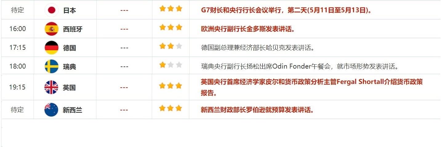 后续及时更新的财历数据请关注:【汇通网5月12日财经日历】