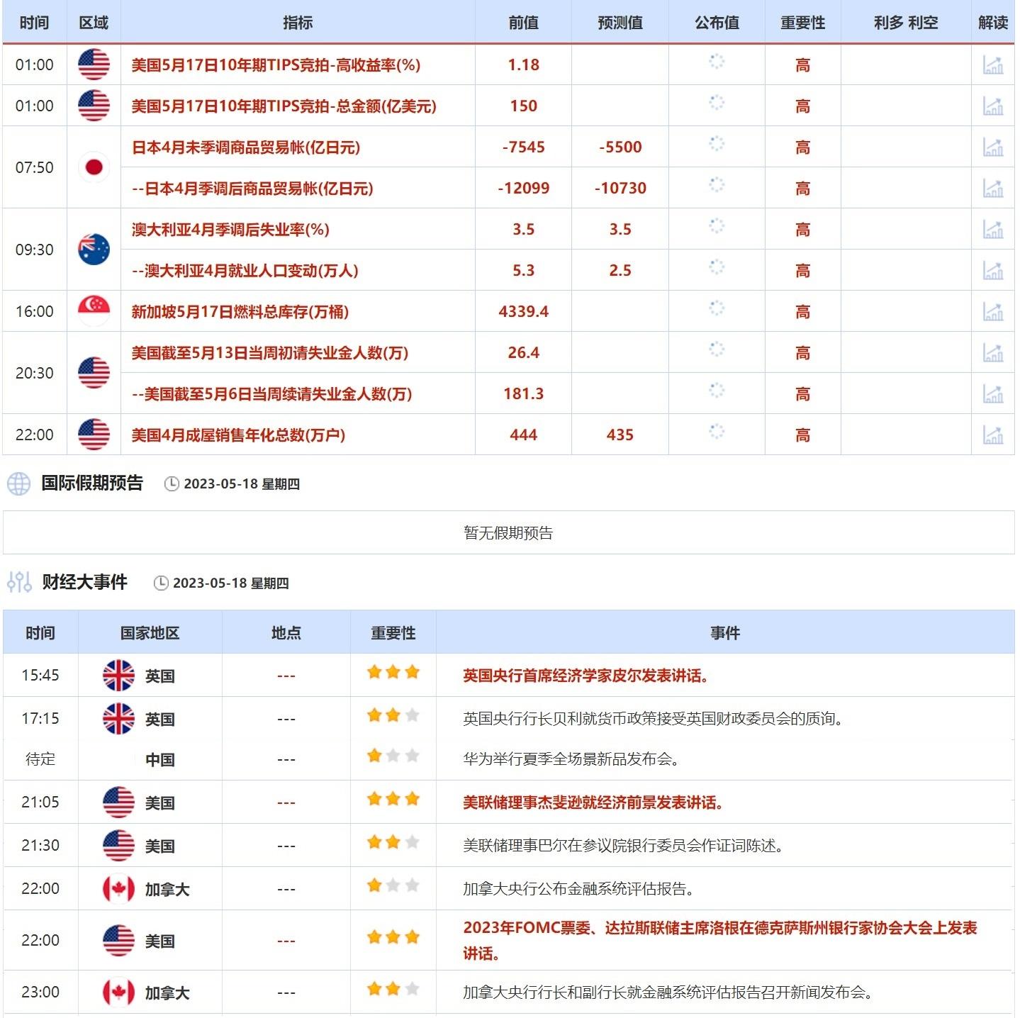 5月18日,英国央行首席经济学家皮尔发表讲话,美联储理事杰斐逊就经济前景发表讲话,达拉斯联储主席洛根在德克萨斯州银行家协会大会上发表讲话,投资者需关注他们的最新观点。