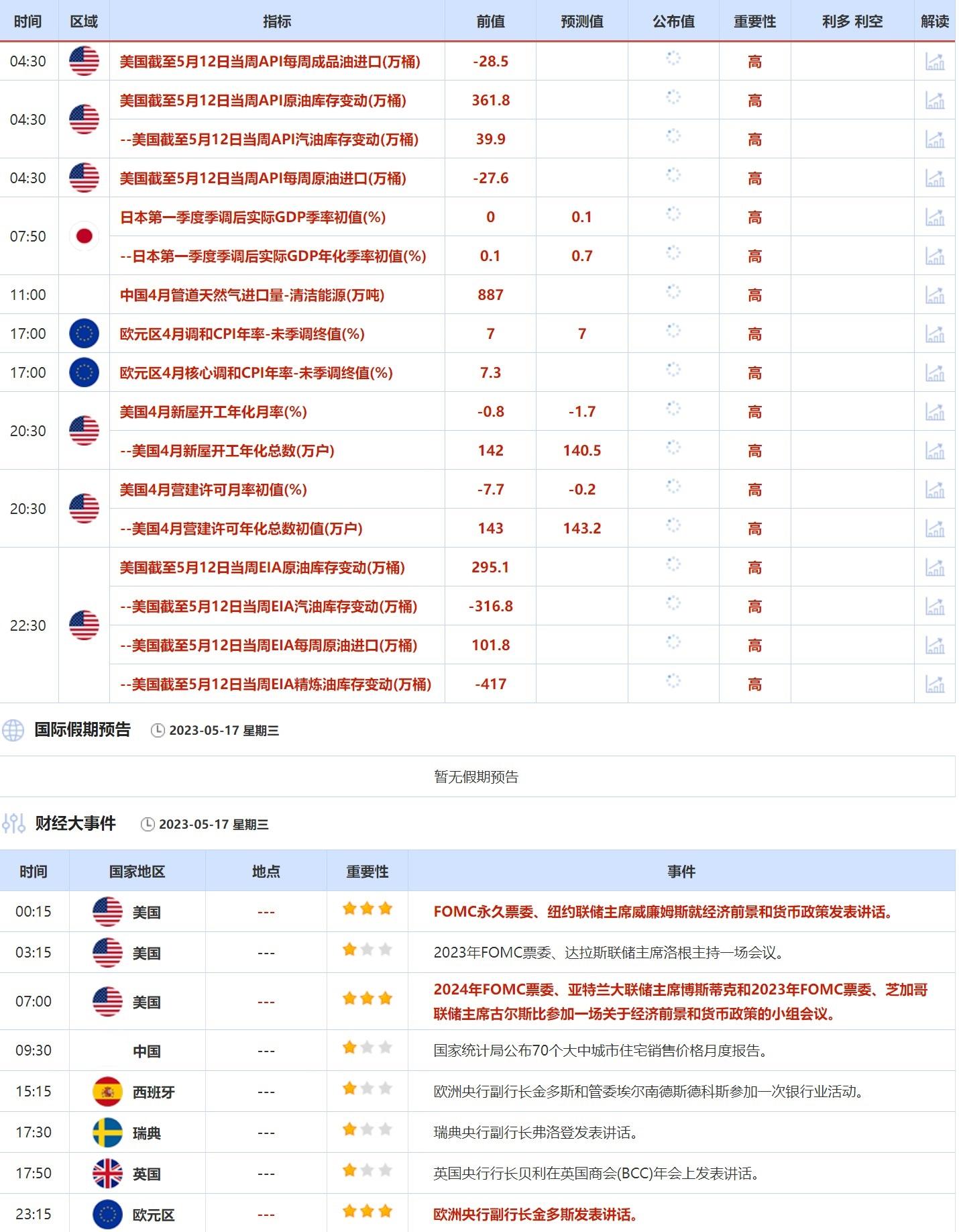 ③5月17日(周三)关键字:美国API和EIA原油库存变动,欧元区4月CPI