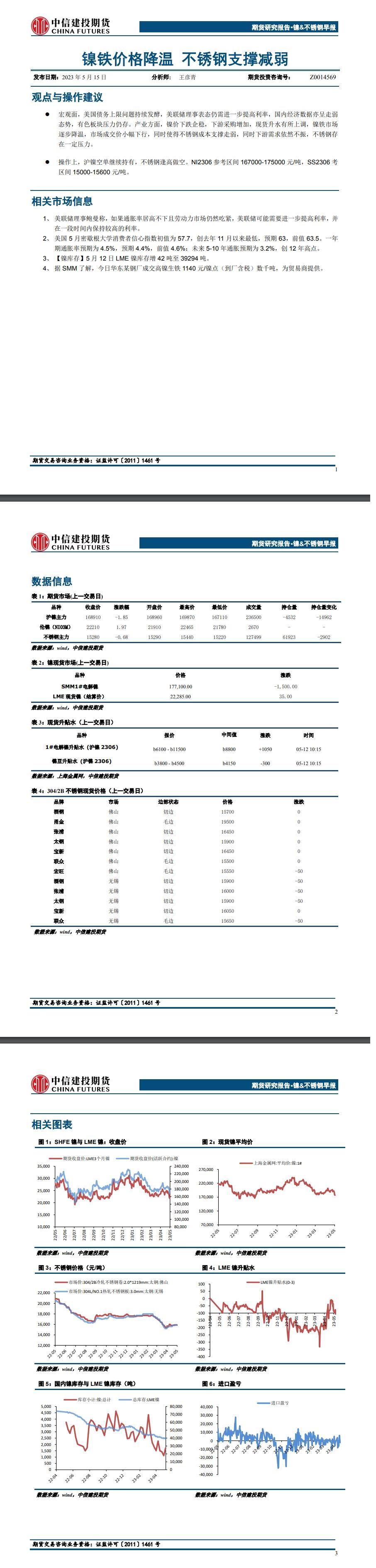 标题:中信建投期货5月15日镍&不锈钢早报:镍铁价格降温,不锈钢支撑减弱