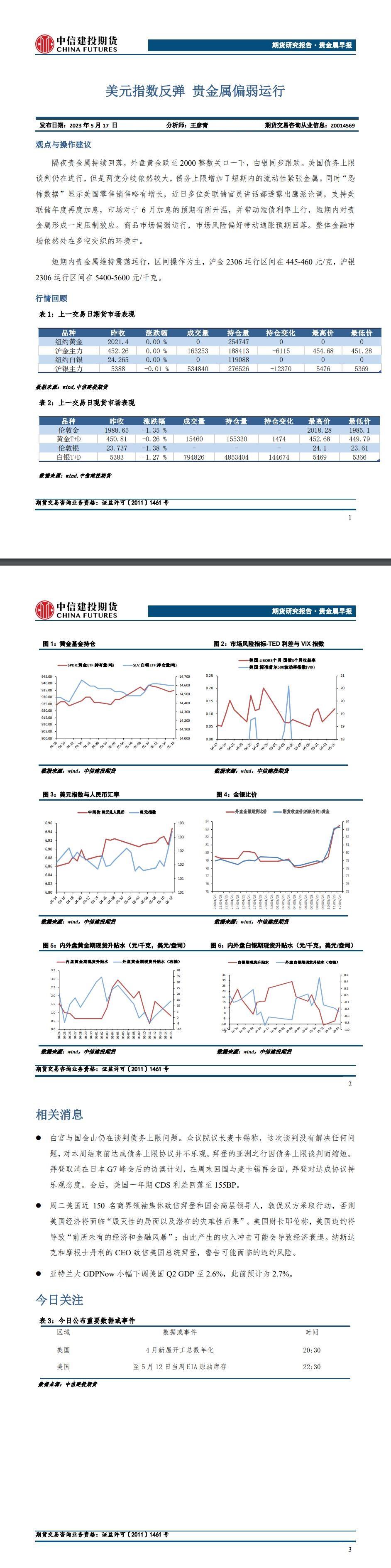 标题:中信建投期货5月17日贵金属日报:美元指数反弹,贵金属偏弱运行