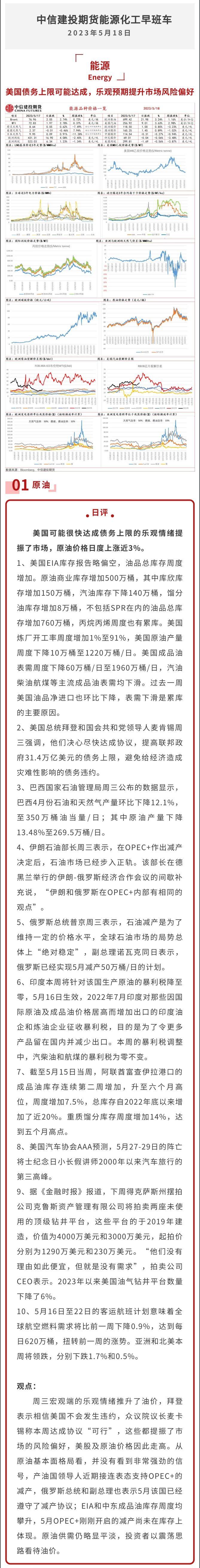 标题:中信建投期货5月18日能源日报:美国债务上限可能达成,乐观预期提升市场风险偏好