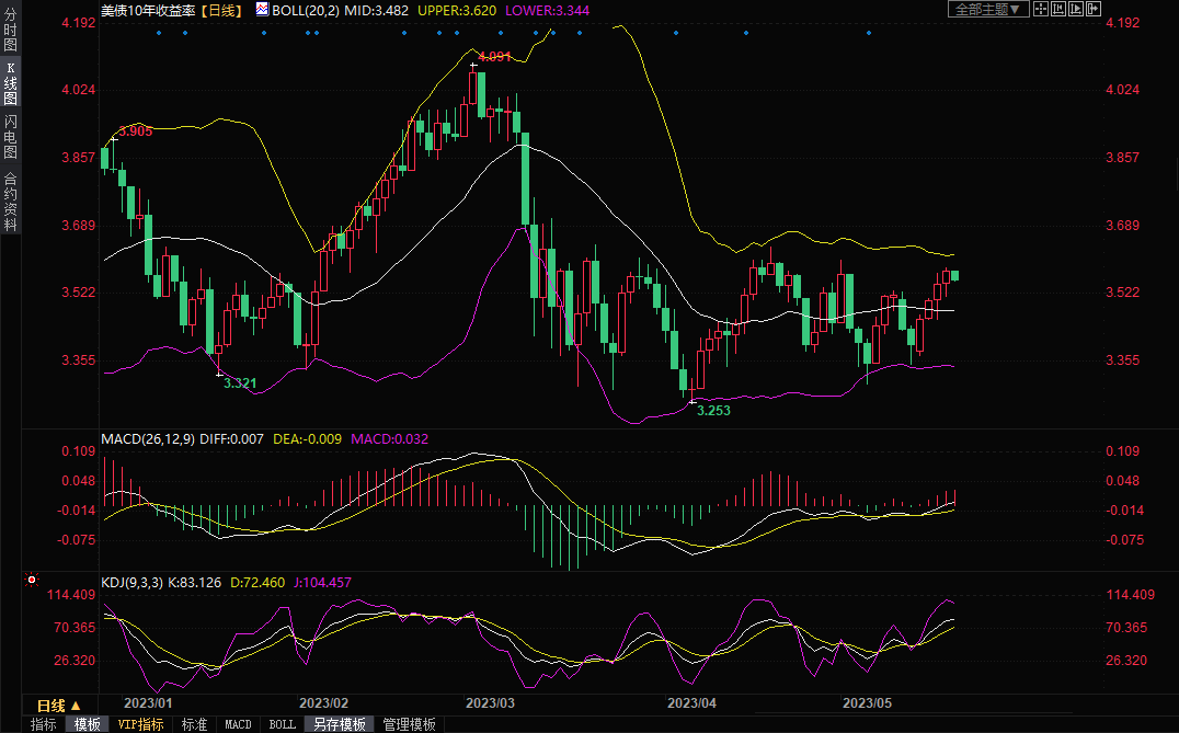10年期国债收益率周三上升3个基点,至3.582%,为5月2日以来新高,周四亚市小幅走弱,回吐了周三大部分涨幅,目前交投于3.562%附近。而两年期国债收益率周三上升8个基点,至4.156%,盘中最高触及4.177%,为4月24日以来新高。