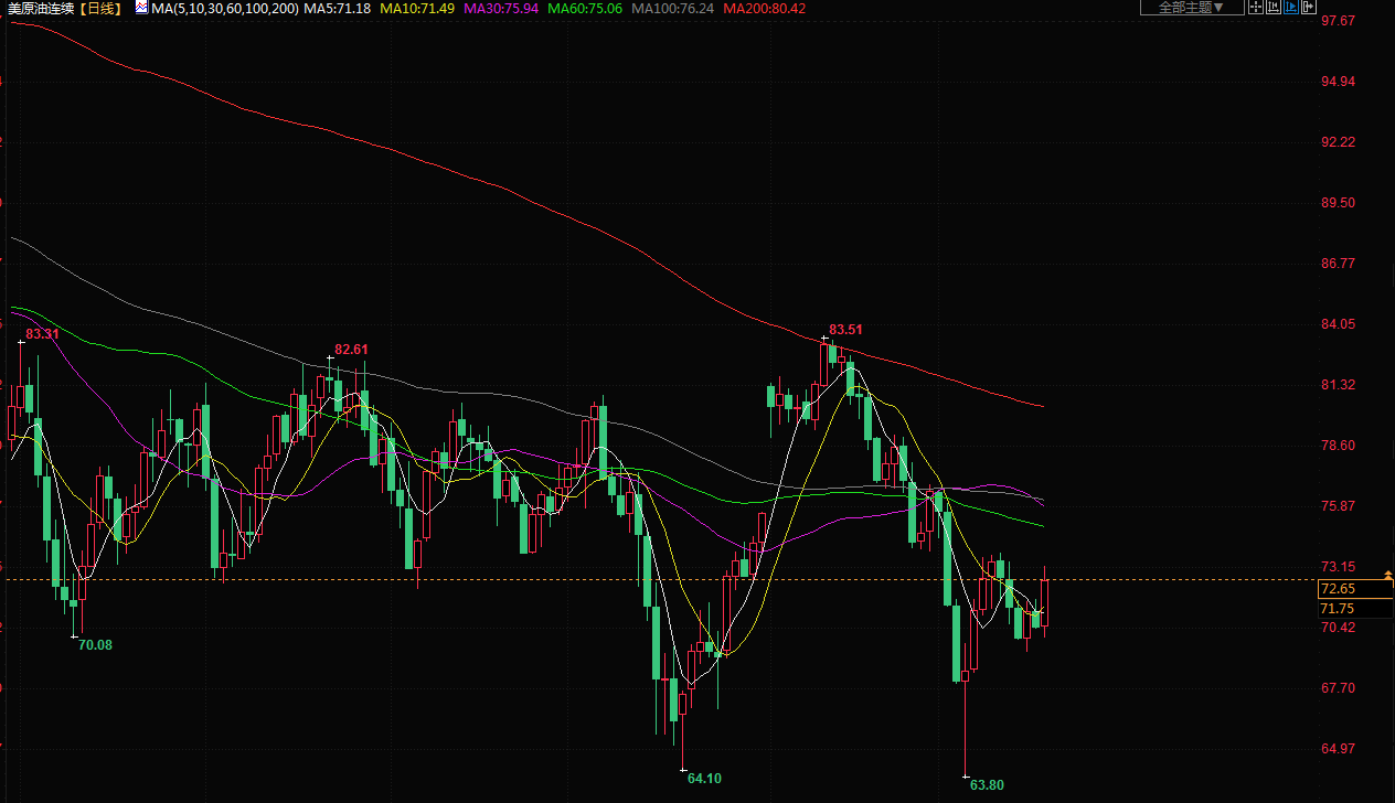 商品期货收盘情况:美国期金结算价下跌0.4%,报每盎司1984.90美元。布伦特原油期货结算价上涨2.7%,报每桶76.96美元。美国原油期货结算价上涨2.8%,报每桶72.83美元。