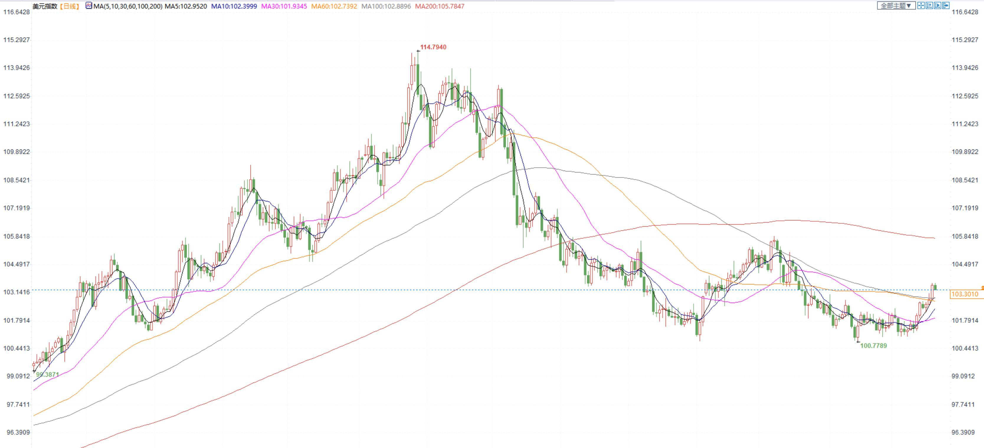 美元指数多头。