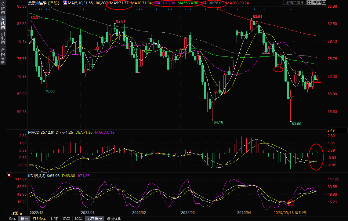 日线级别:震荡;油价此前在近一年半低点附近获得支撑后震荡反弹,MACD初步金叉,KDJ初步金叉,短线略微偏向多头,初步阻力在21日均线73.06附近,进一步阻力在4月28日低点73.92附近,若能顶破该阻力,则增加后市看涨信号,进一步阻力在55日均线74.80附近,100日均线阻力在76.09附近,如果进一步上破,则有望看向200日均线80.24附近。