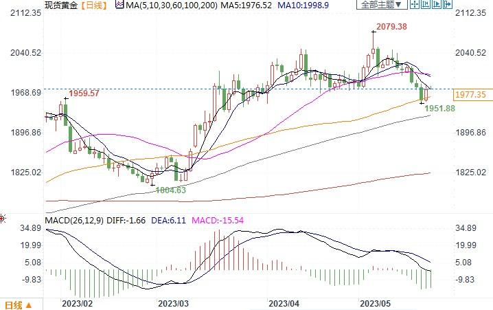 支撑位在1950美元,阻力位在2000美元。他说:“如果债务上限谈判继续陷入困境,本周金价可能会轻松稳定在2000美元上方。”