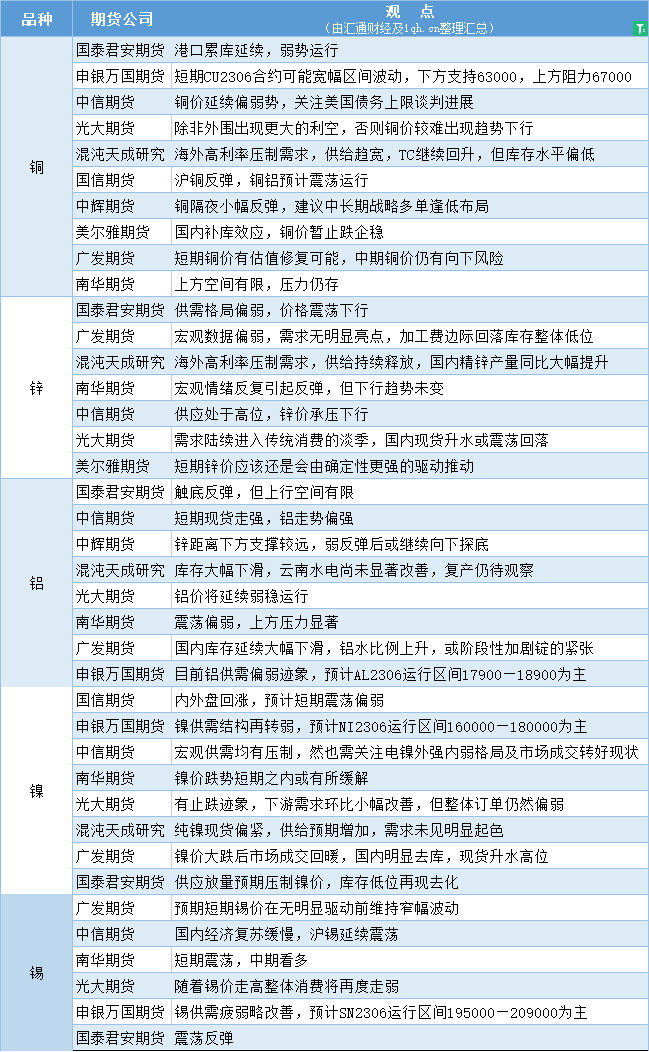 汇通财经APP讯——期货公司观点汇总一张图:5月22日有色系(铜、锌、铝、镍、锡等)