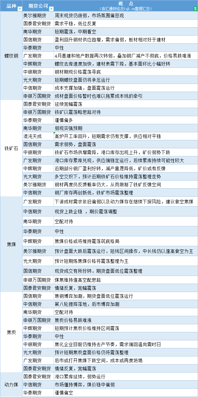 汇通财经APP讯——期货公司观点汇总一张图:5月22日黑色系(螺纹钢、焦煤、焦炭、铁矿石、动力煤等)