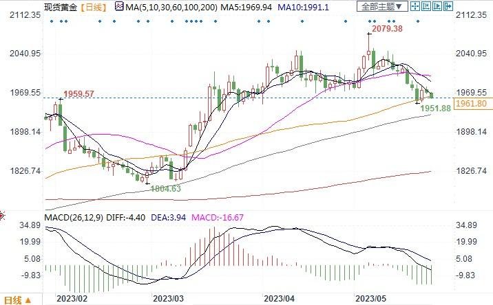 北京时间5月23日11:23,现货黄金报1961.80美元/盎司