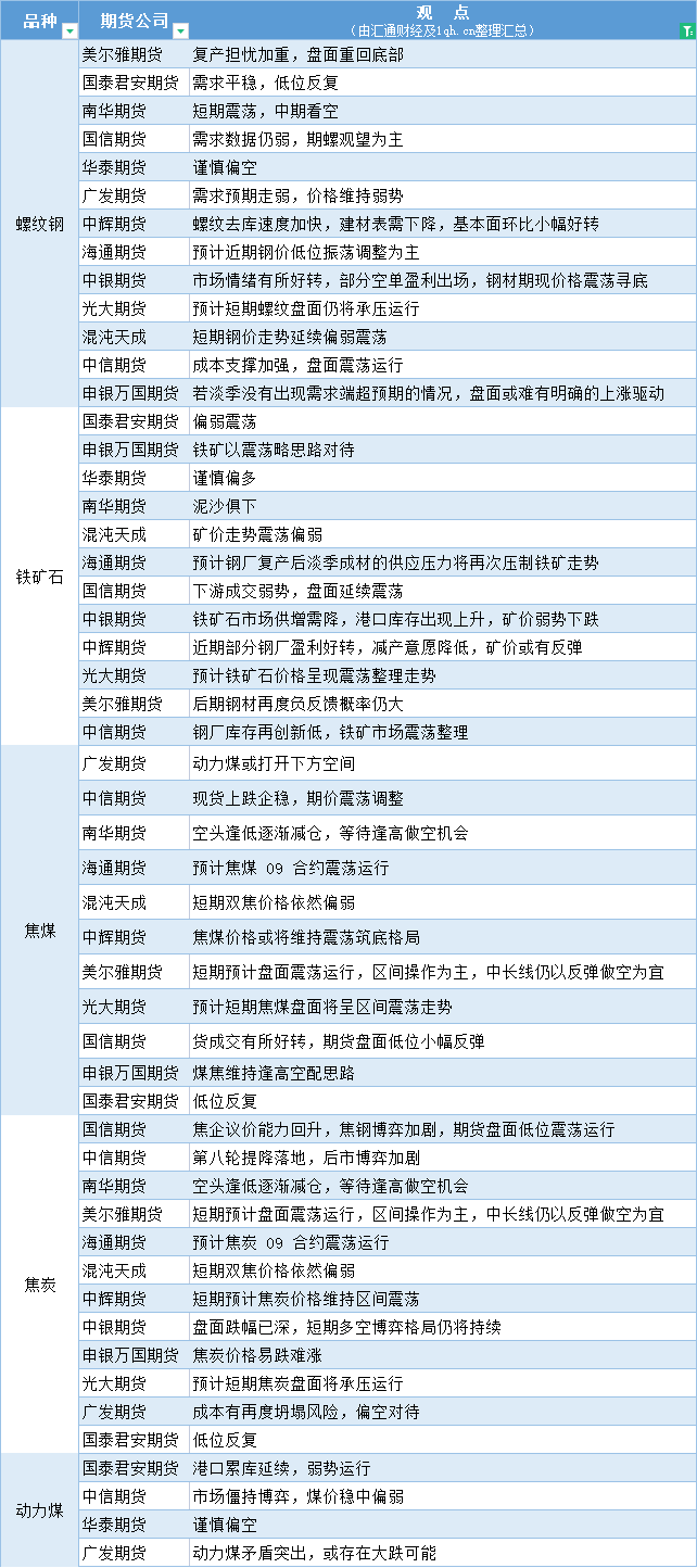 汇通财经APP讯——期货公司观点汇总一张图:5月23日黑色系(螺纹钢、焦煤、焦炭、铁矿石、动力煤等)