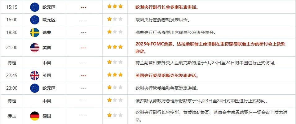 后续及时更新的财历数据请关注:【汇通财经5月23日财经日历】