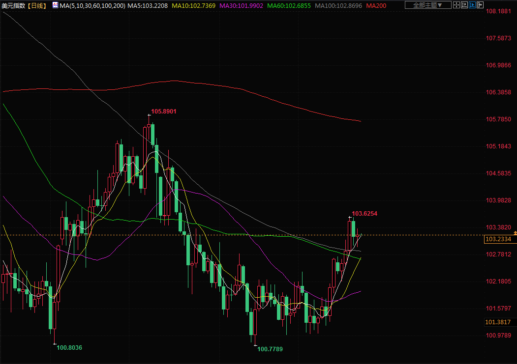 美元指数周一上涨0.15%,报103.17,徘徊在上周触及的3月20日来的高点103.63下方。