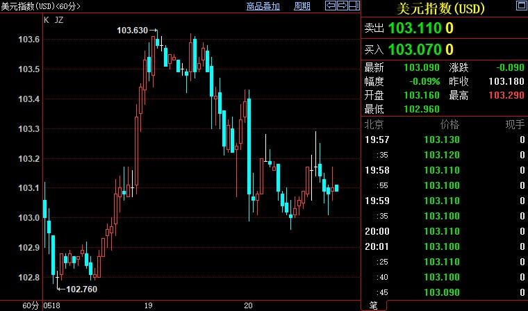 北京时间20:00,现货黄金下跌0.21%至1972.90美元/盎司;COMEX期金主力合约下跌0.34%至1974.8美元/盎司;美元指数下跌0.08%至103.116。