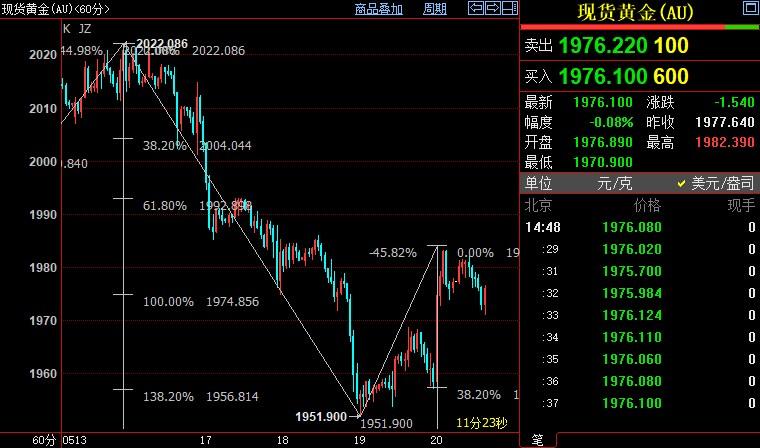 现货黄金下看1957美元