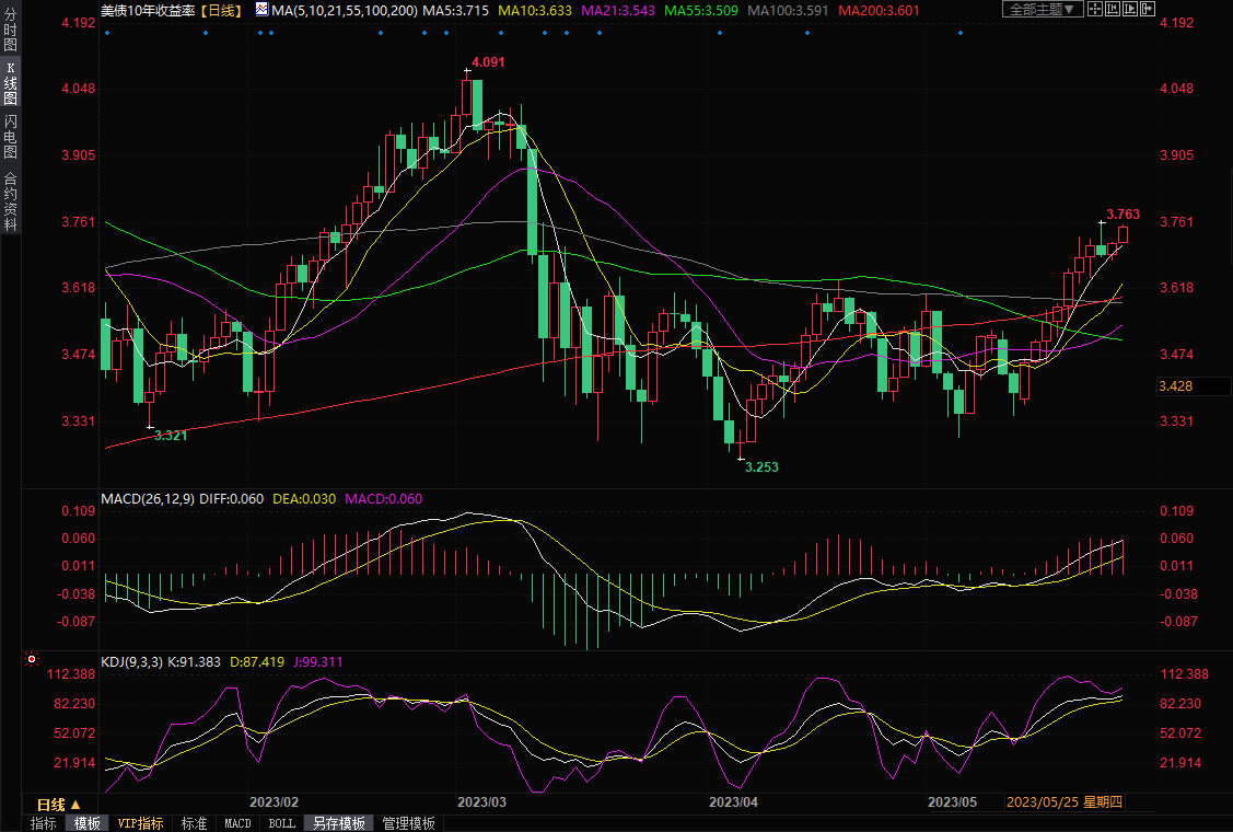 美债收益率因债务上限谈判久拖不决上升,6月到期国库券收益率升穿7%