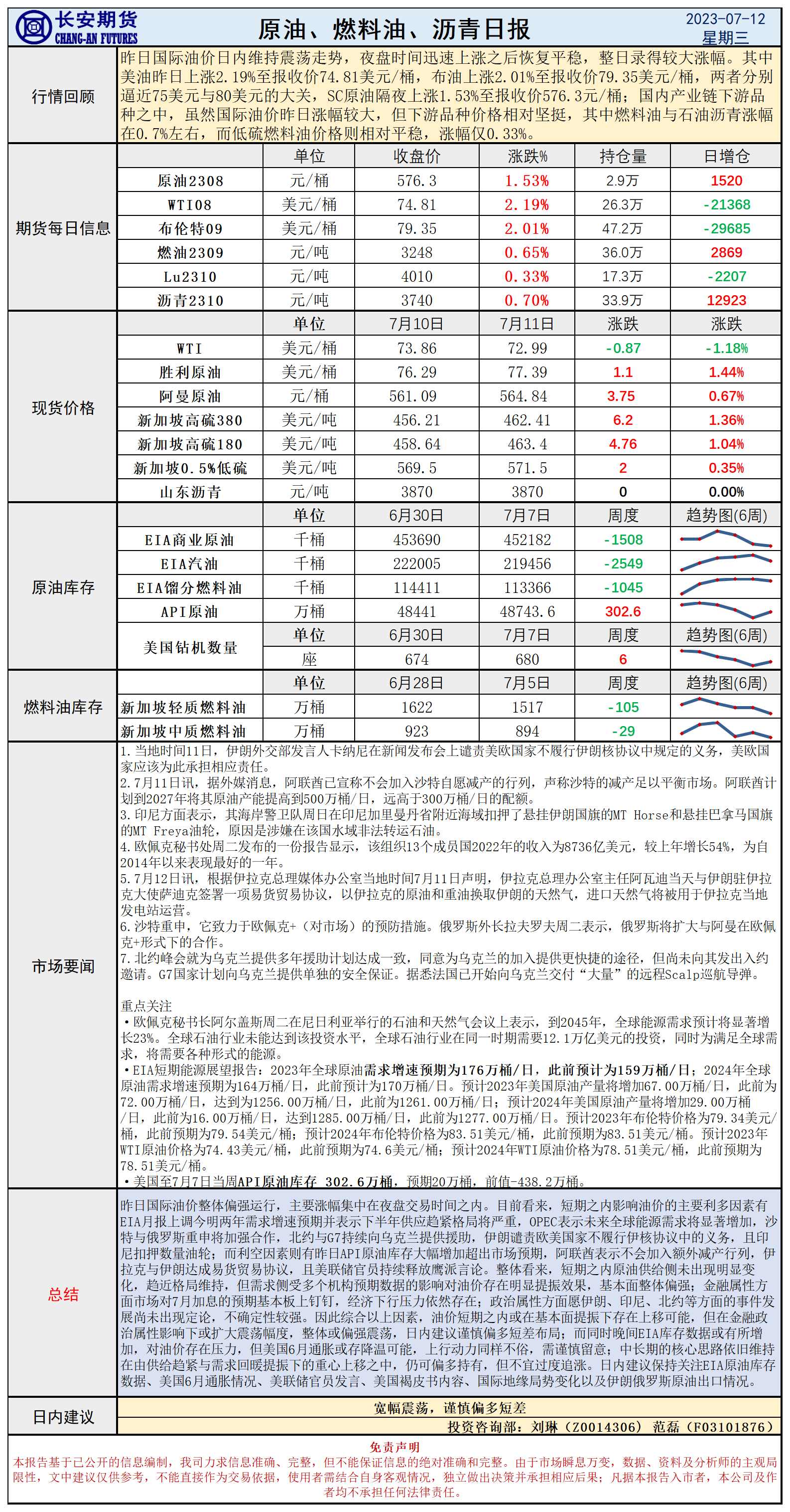 标题:长安期货7月12日原油日报:库存增加难抵需求回暖预期,美国6月通胀或助力油价再进一步