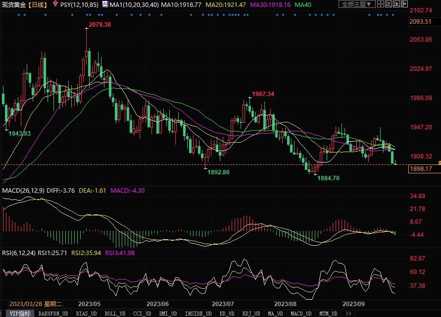 自上周美联储利率会议以来,美联储越来越多的官员在货币利率上发表鹰派言论。从而将美元兑一篮子货币推升至10个月来的最高水平,为此也是对黄金施加了下行的压力。明尼阿波利斯联储主席卡什卡利在周二的一次讲话中表示,他预计利率在2023年至少会再次上涨,并且可能会在2024年之前保持较高水平。他的言论呼应了美联储主席鲍威尔上周的言论,鲍威尔表示,粘性通胀和紧张的劳动力市场可能会导致今年再次加息。鲍威尔还淡化了明年大幅降息的预期,美联储的目标利率将在2024年之前保持在5%以上。与此同时,美国的经济也似乎给力的予以上述观点继续添加佐证。周二的数据显示,8月美国新建独栋住宅销量降幅超过预期,受欢迎的30年期固定抵押贷款利率跃升至7%以上,但7月美国房价同比连续第二个月加速上升。这似乎更能印证了美联储官员有关利率需更长期保持在高水准上的论调。美元高利率保持长时间,必然就成为压在黄金头上大石,使黄金的走势维艰。