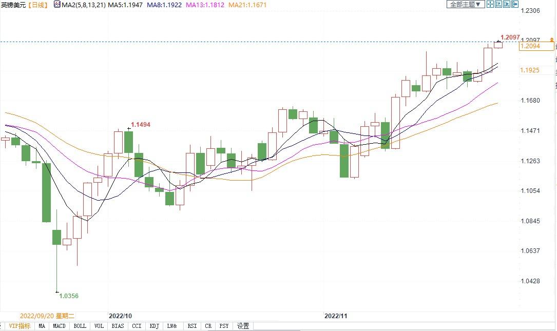 北京时间11月24日11:02,英镑兑美元报1.2095/97
